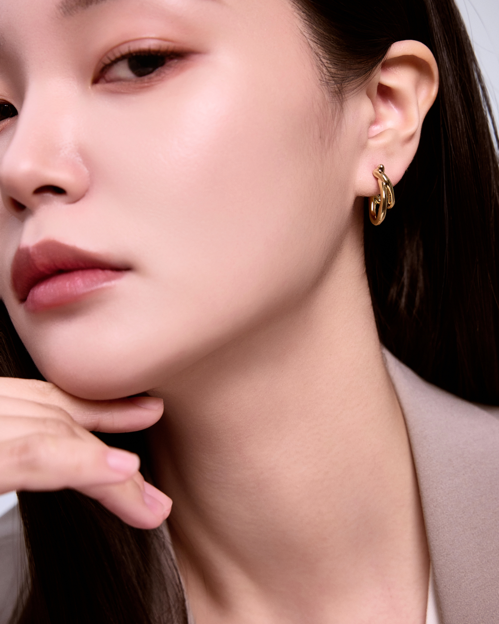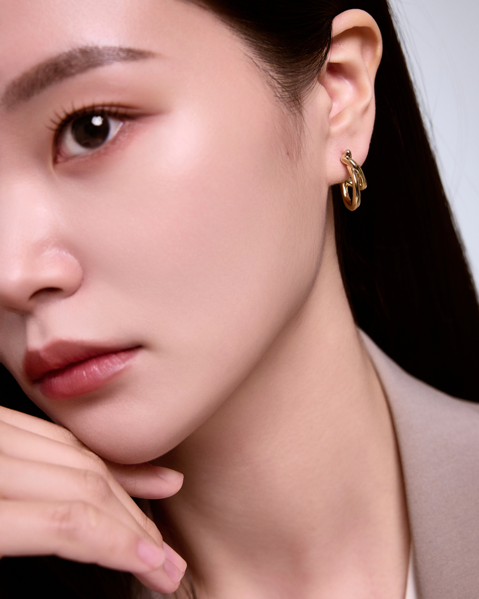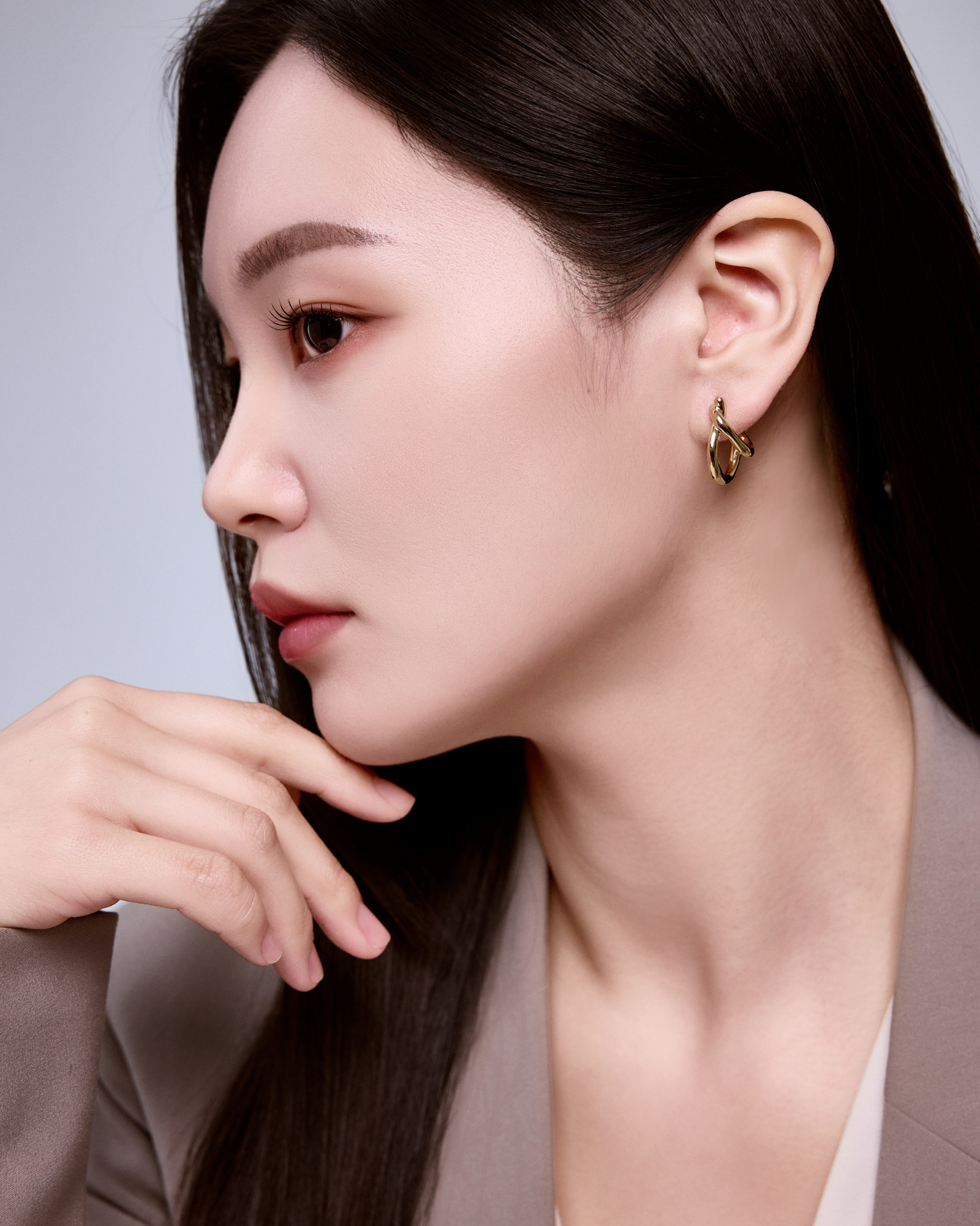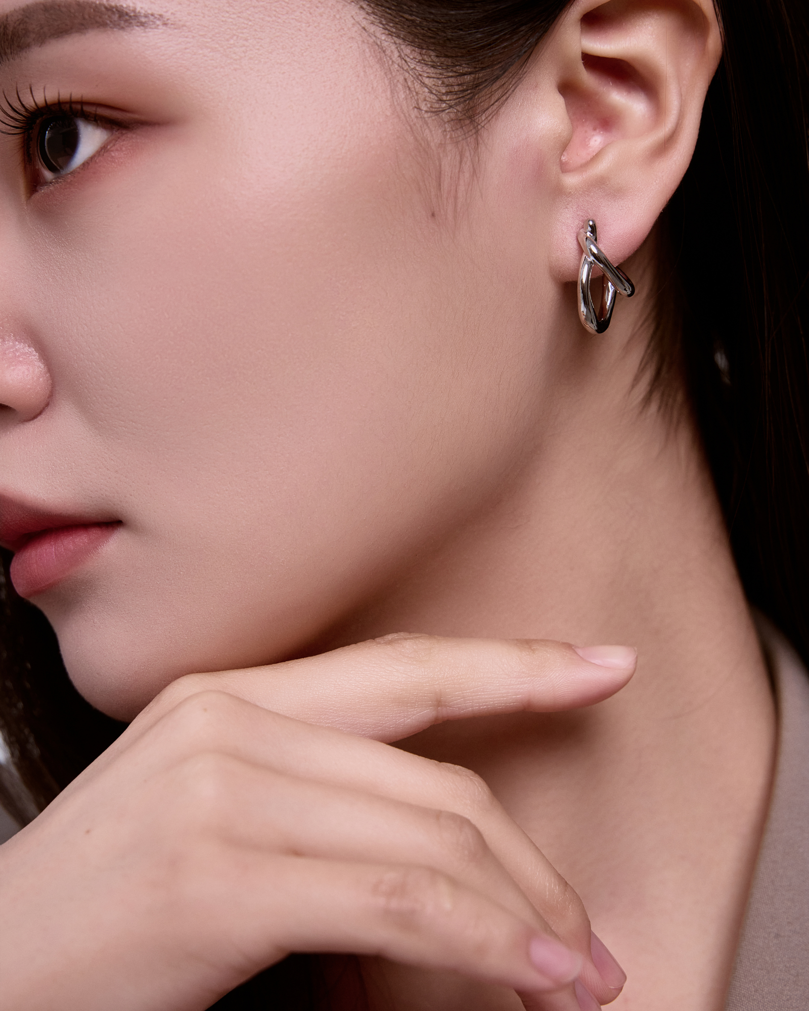 01.2本のラインが折り重なる、抜け感のあるボリューム造形。軽やかな陰影が、横顔に洗練された奥行きを添えます。