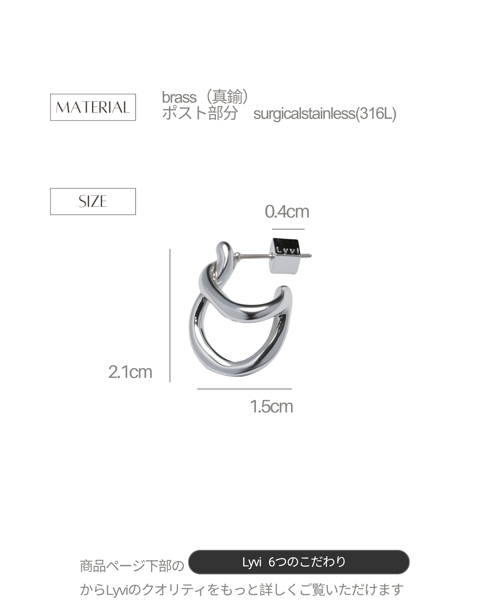 ご使用後は、柔らかい布でやさしく拭き取り、直射日光や湿気を避けた場所で保管してください。小さなケアを重ねることで、Lyviのジュエリーは、より長く、美しく寄り添います。