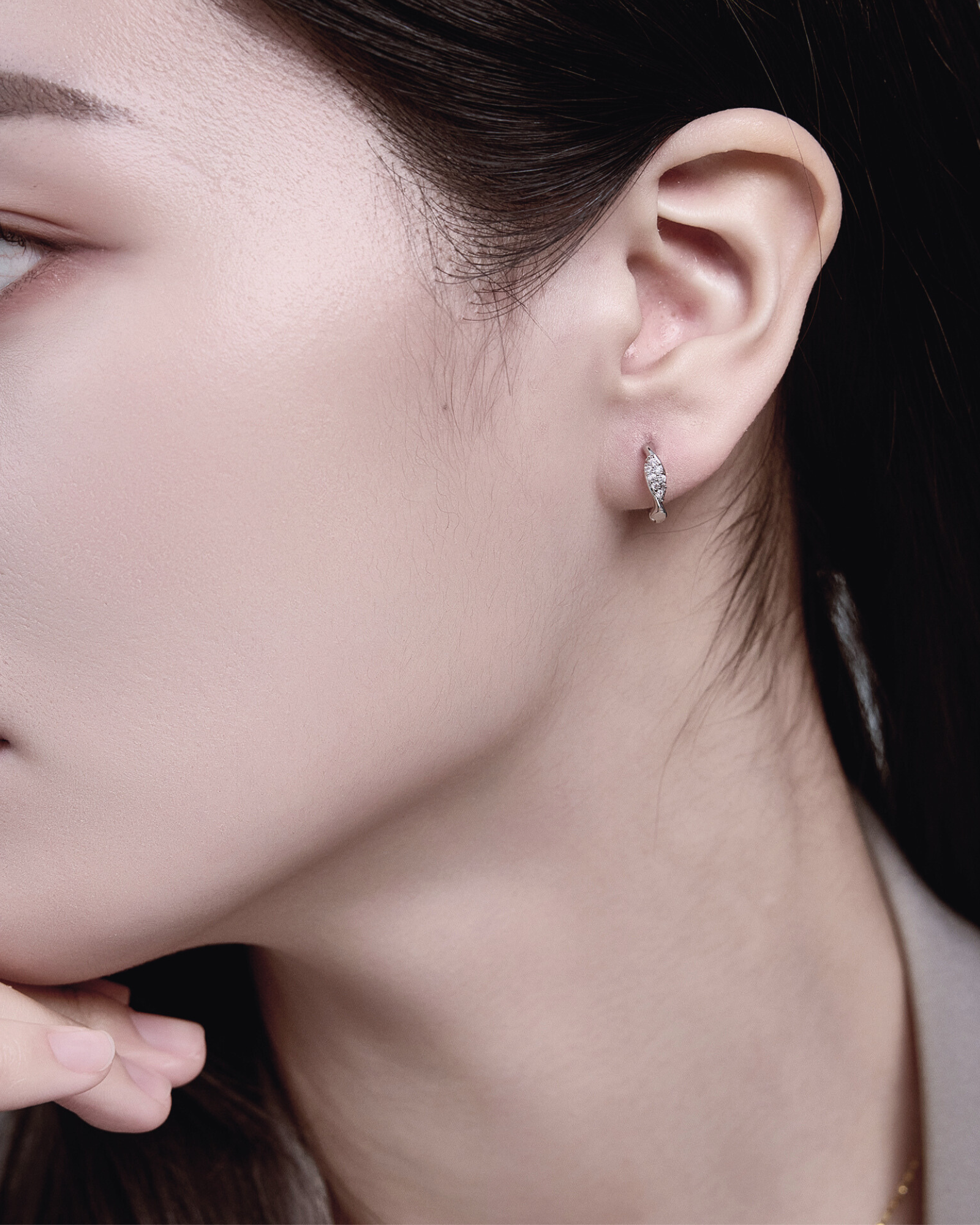 表面のわずかなゆらぎが、自然体の美しさを引き立てます。ワンポイントのジルコニアが肌に光を添えるようにさりげなく輝き、静けさの中に、ほんの少しの華やぎを添えてくれます。