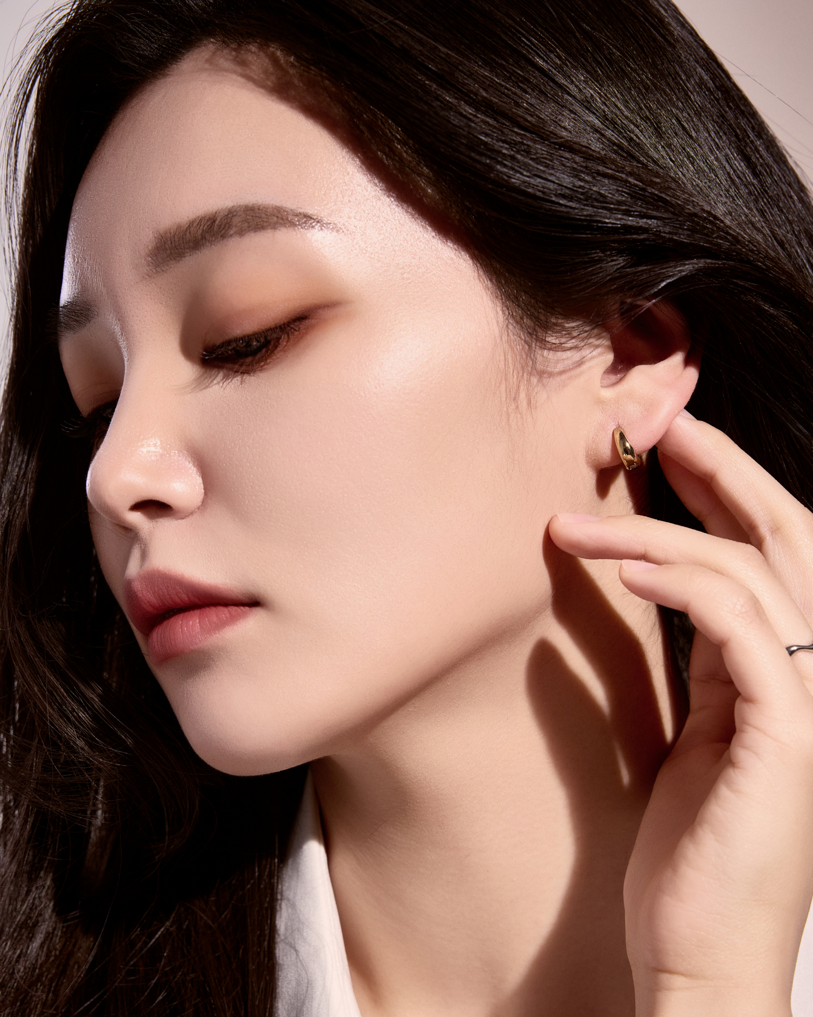 控えめなサイズながらどこか芯のある存在感を耳元に宿します。艶やかな光が肌の上で静かに広がり、装いに深みを添えるフープピアスです。
