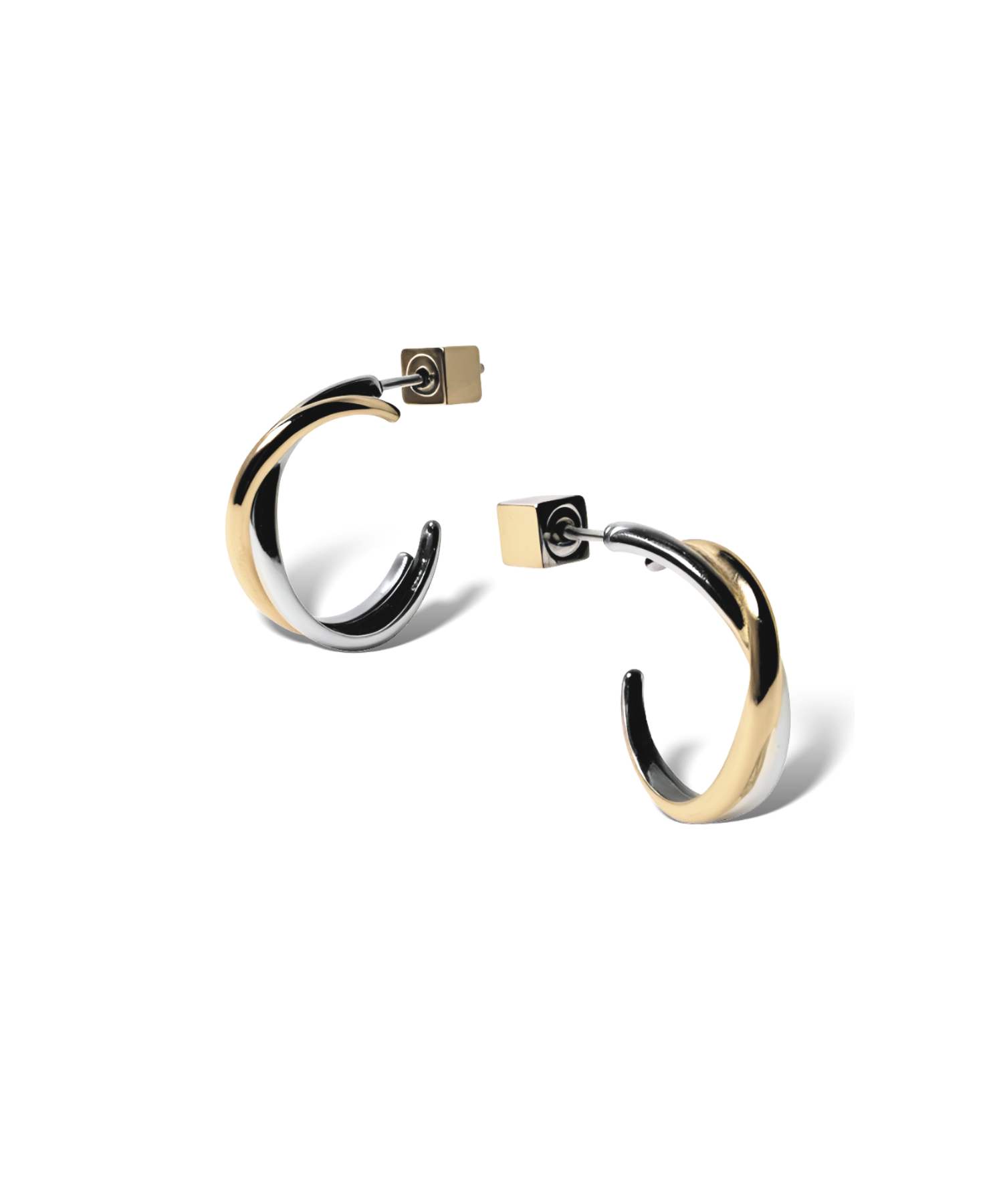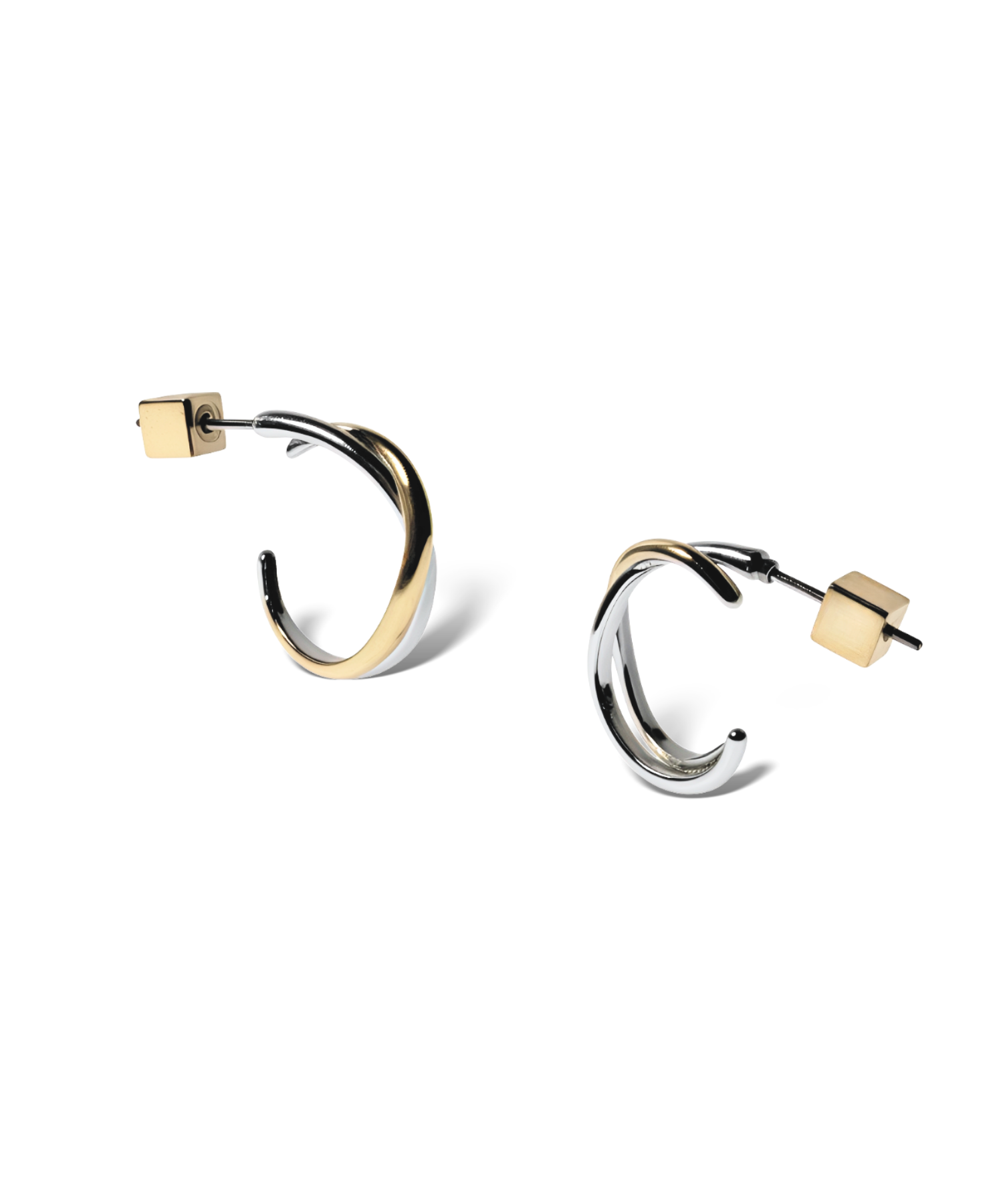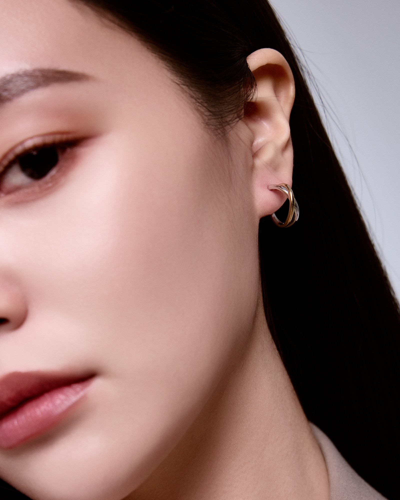 正面で交わる二重のラインが造形にリズムを刻む。アクセントゴールドとヴェールシルバーが生み出す繊細なグラデーションが造形の美しさを際立たせ、控えめなのに印象に残る仕上がりをつくります。